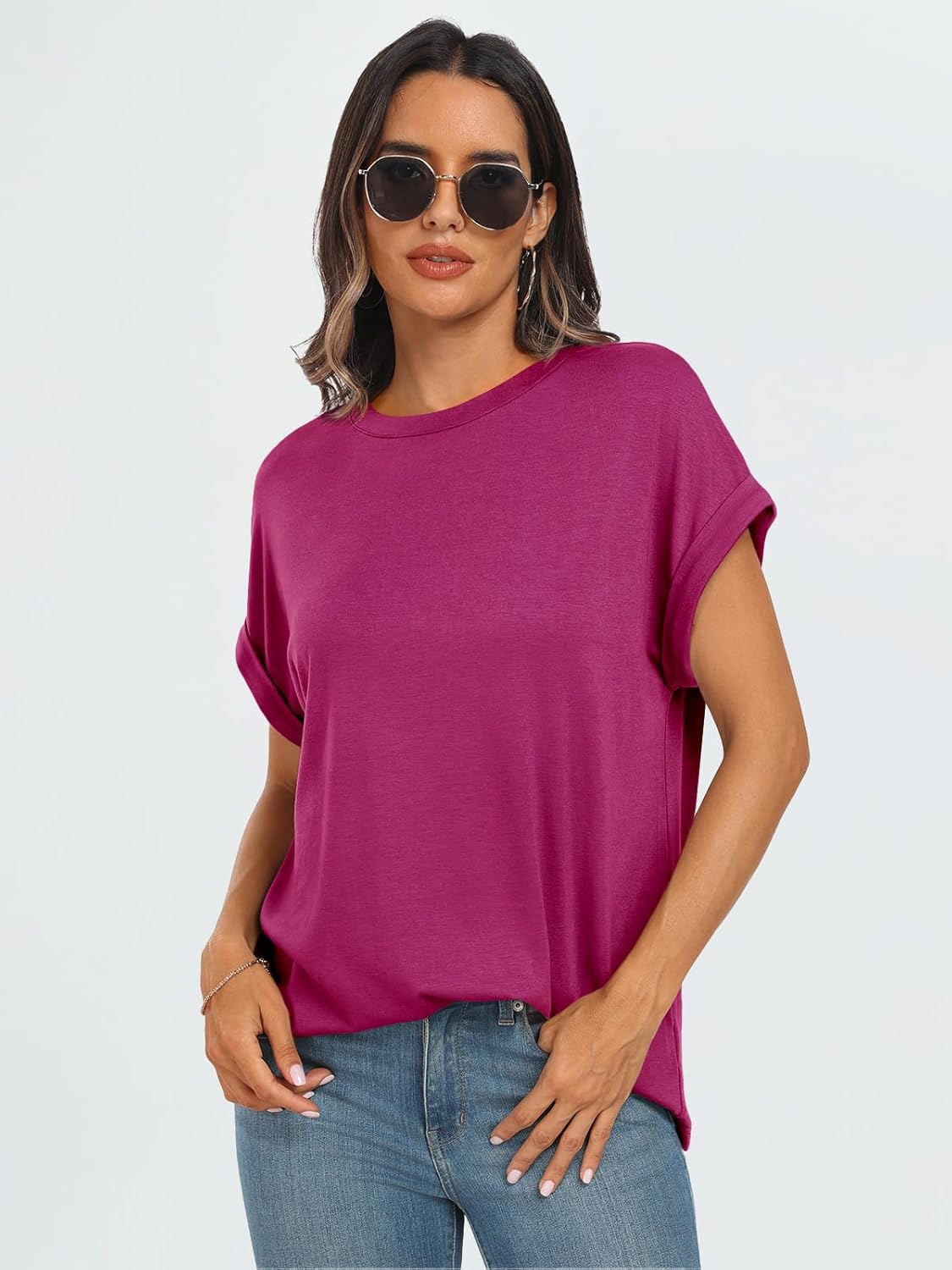 ✔ Effortless Elegance: Rolled sleeves and a timeless crew neck make it effortlessly chic while keeping things casual.