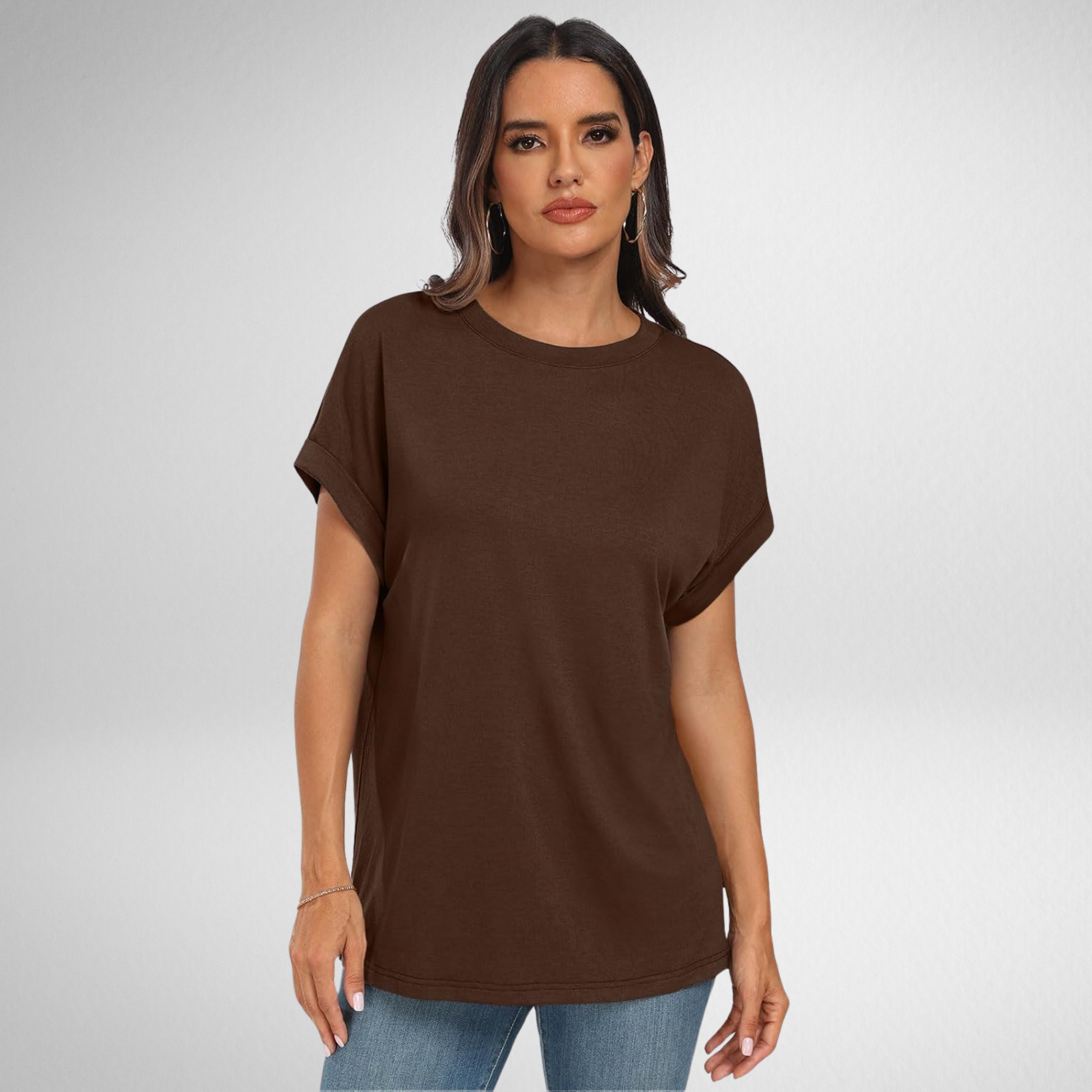 The Nora Classic Tee is designed for women who want to look put together without the effort. With a relaxed yet flattering drape, soft rolled sleeves, and a timeless silhouette, this tee is perfect for everyday wear—whether you’re running errands, meeting friends, or simply enjoying a quiet moment for yourself.